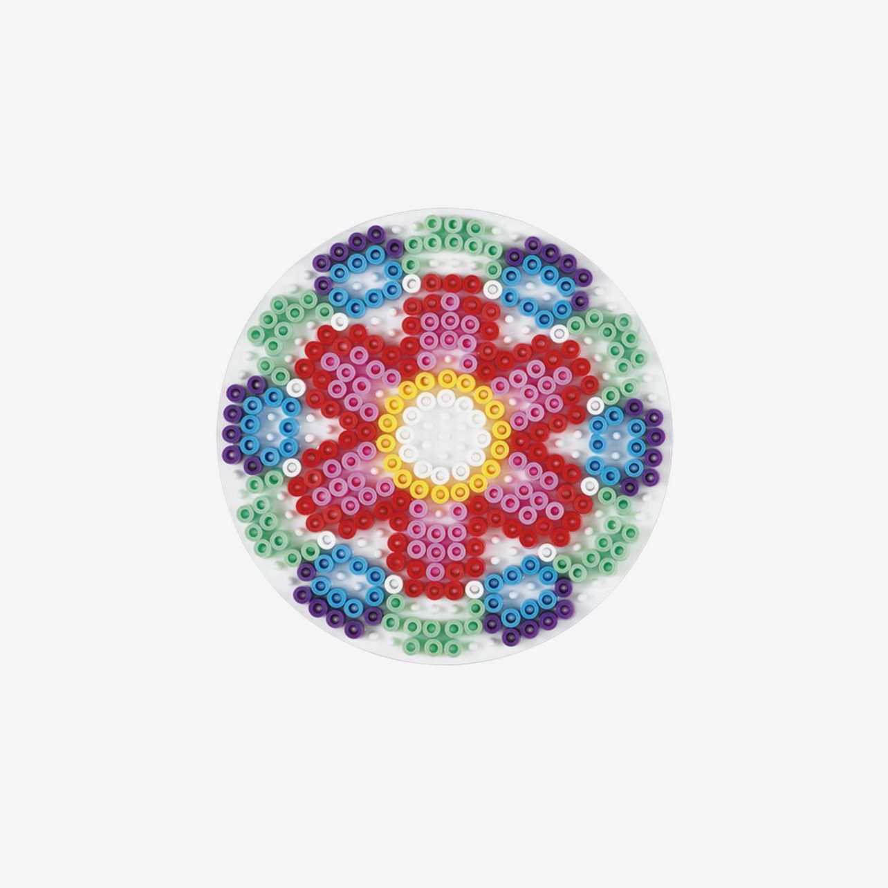 Denna runda pärlplatta är ca 15 cm stor.