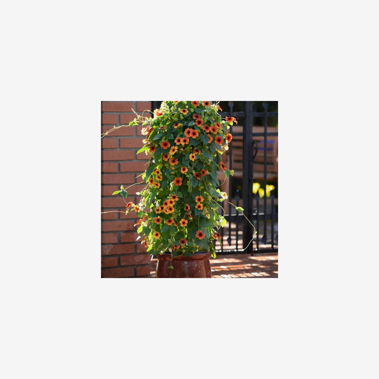 En fin variant av svartöga som får mörka blommor. Arizona Glow får mängder av mörkt orange/bruna blommor med en ännu mörkare mitt.