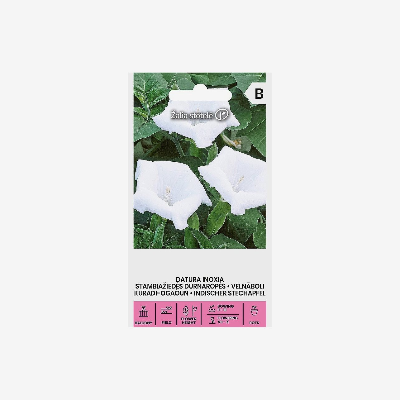 Indisk spikklubba är en kraftig och dekorativ sommarblomma med stora, trumpetformade vita blommor. Den blommar rikligt hela sommaren och ger ett exotiskt inslag i rabatt och större planteringar.