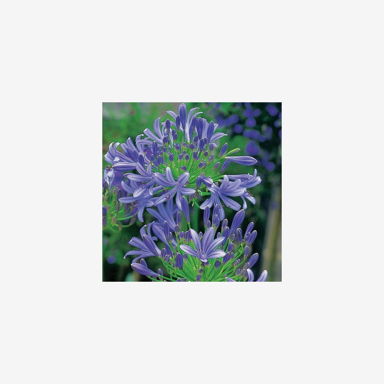 Agapantus Headborne Hybrids blir ca 120 cm hög och blommar i Juni-Oktober.