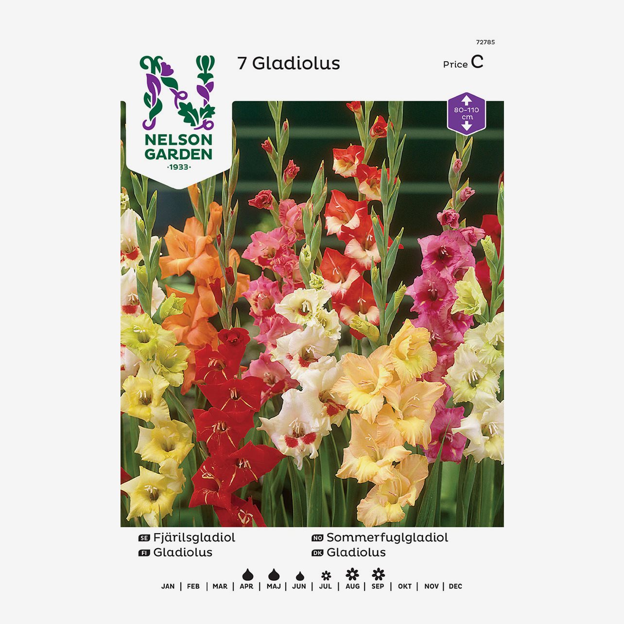 En härlig blandning av ljuvliga fjärilsgladioler. Rikligt med mjukt rundade blommor i kraftfulla pastellfärger. Lämplig i rabatter, gärna flera i grupp. Kan även odlas i stora krukor. Underbara i buketter.