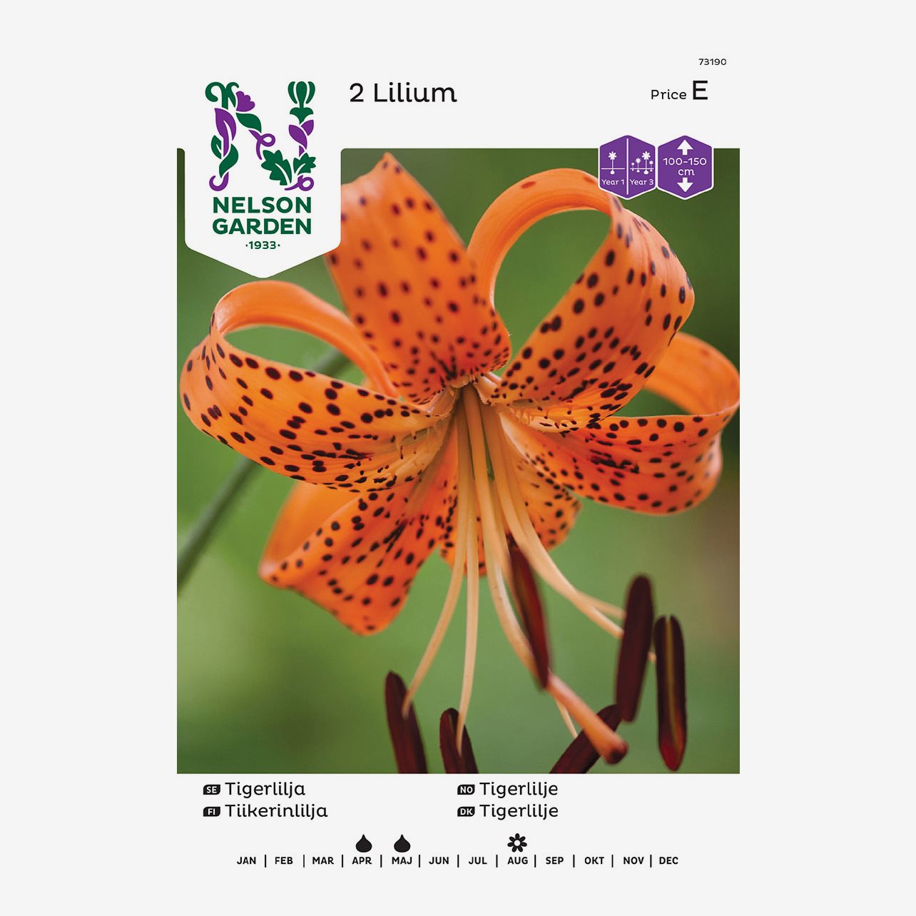 De orangeröda blommorna är mycket karaktäristiska med sin turbanform och mörka fläckar. Kan där den trivs sprida sig, främst med bulbiller. Passar utmärkt i rabatt, bland buskar, i glest gräs och ängsmark. Anses vara mindre smaklig för rådjur.
