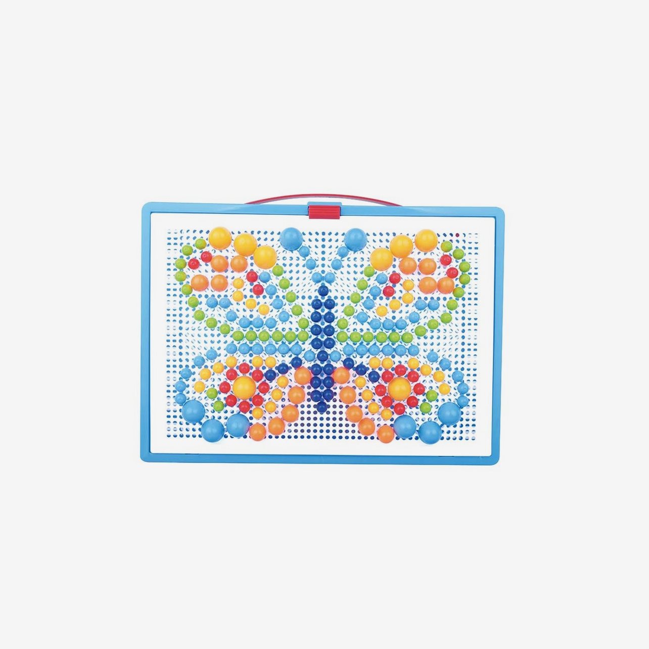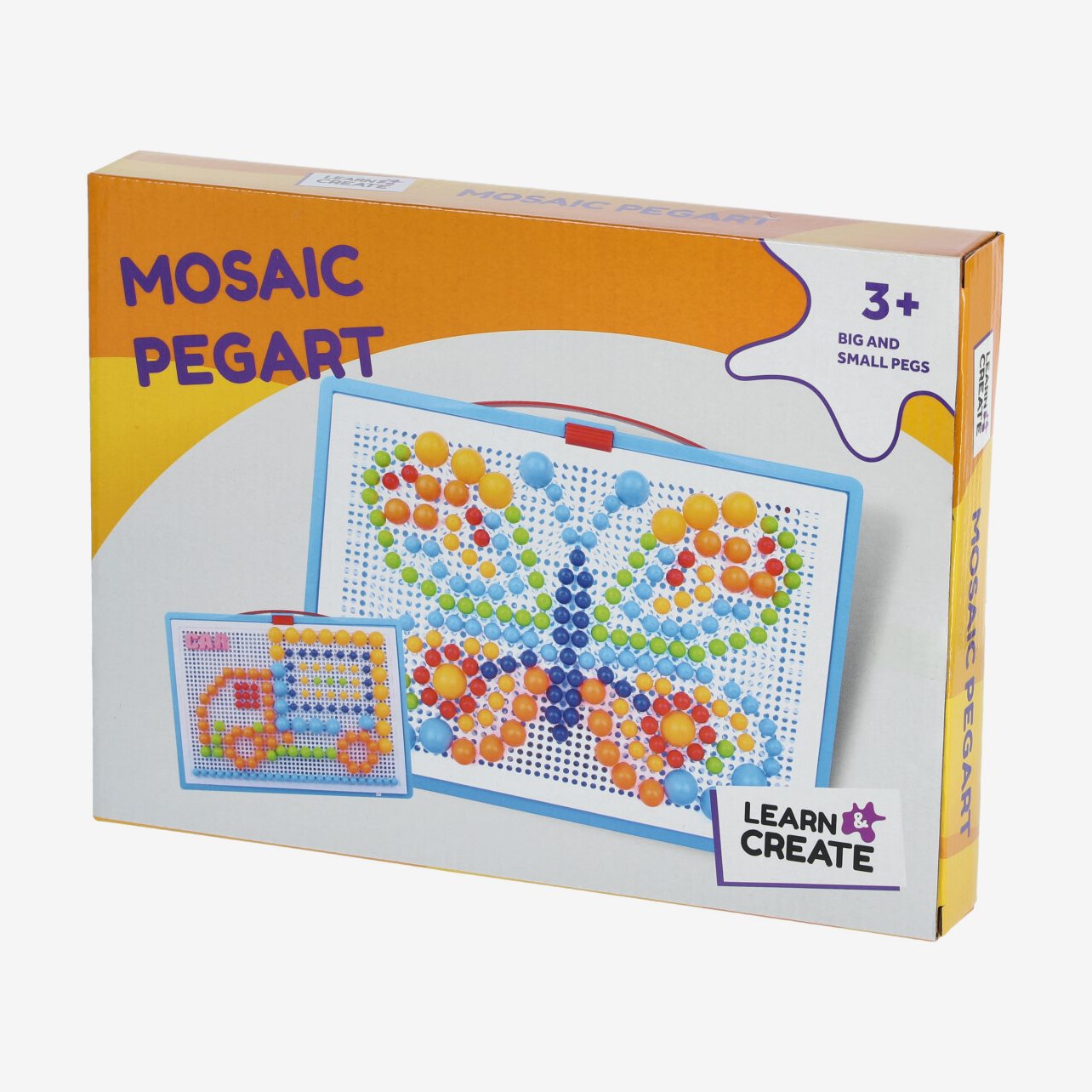 Skapa figurer eller meddelanden genom att placera peggarna i plattan. LAC Mosaic låda med pegart är både lärande, roligt, kreativt samt utvecklar hand-öga koordinationen och färgkunskaper. Alla peggarna är gjorda av hög kvalitativ flexibel plast som är tvättbar, har rundade kanter, säkra och omöjliga att förstöra.