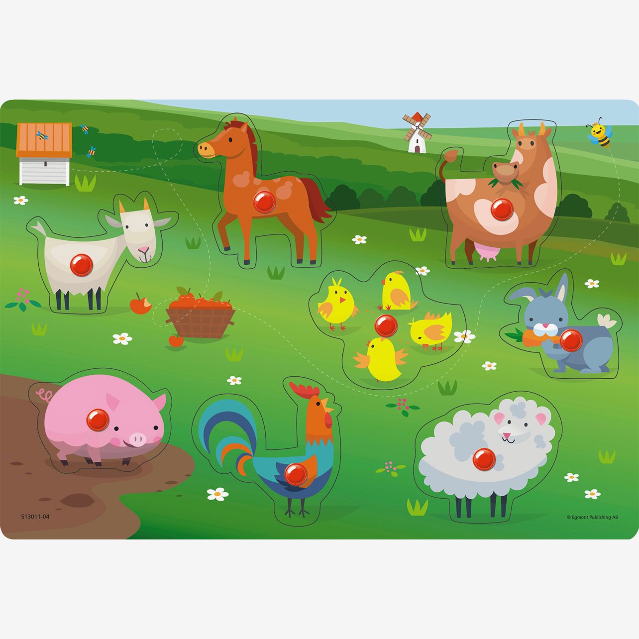 Med detta knoppussel får barnen träna på att placera ut rätt djur på rätt plats, vad som är upp och ned, stort och litet.