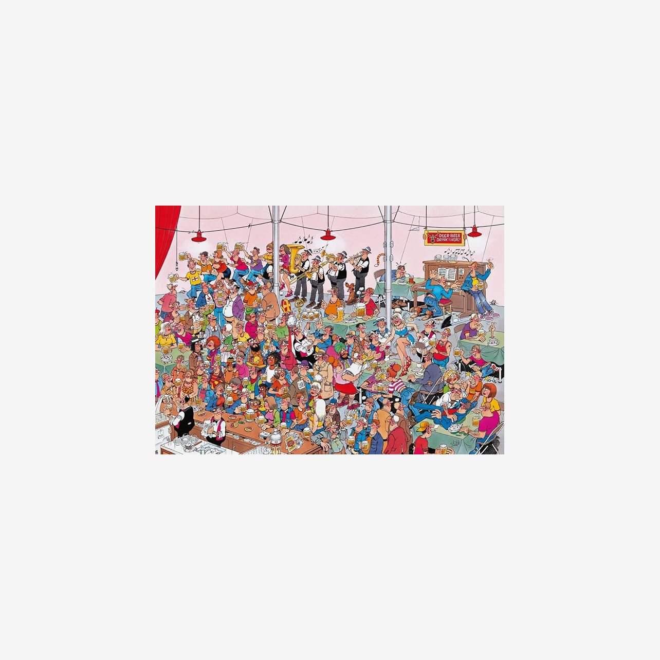Full fest och ölet flödar! Ett roligt pusselmotiv för alla oss som gillar att lägga pussel. Detta motiv är målat av Jan van Haasteren och är på 1000 bitar. Det blir ca 68 x 48 cm när det är klart.